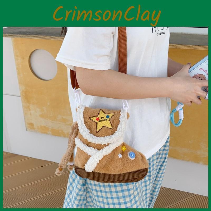 Плюшевая мультяшная наплечная сумка в форме туфли для девочек с застежкой-молнией и внутренним карманом