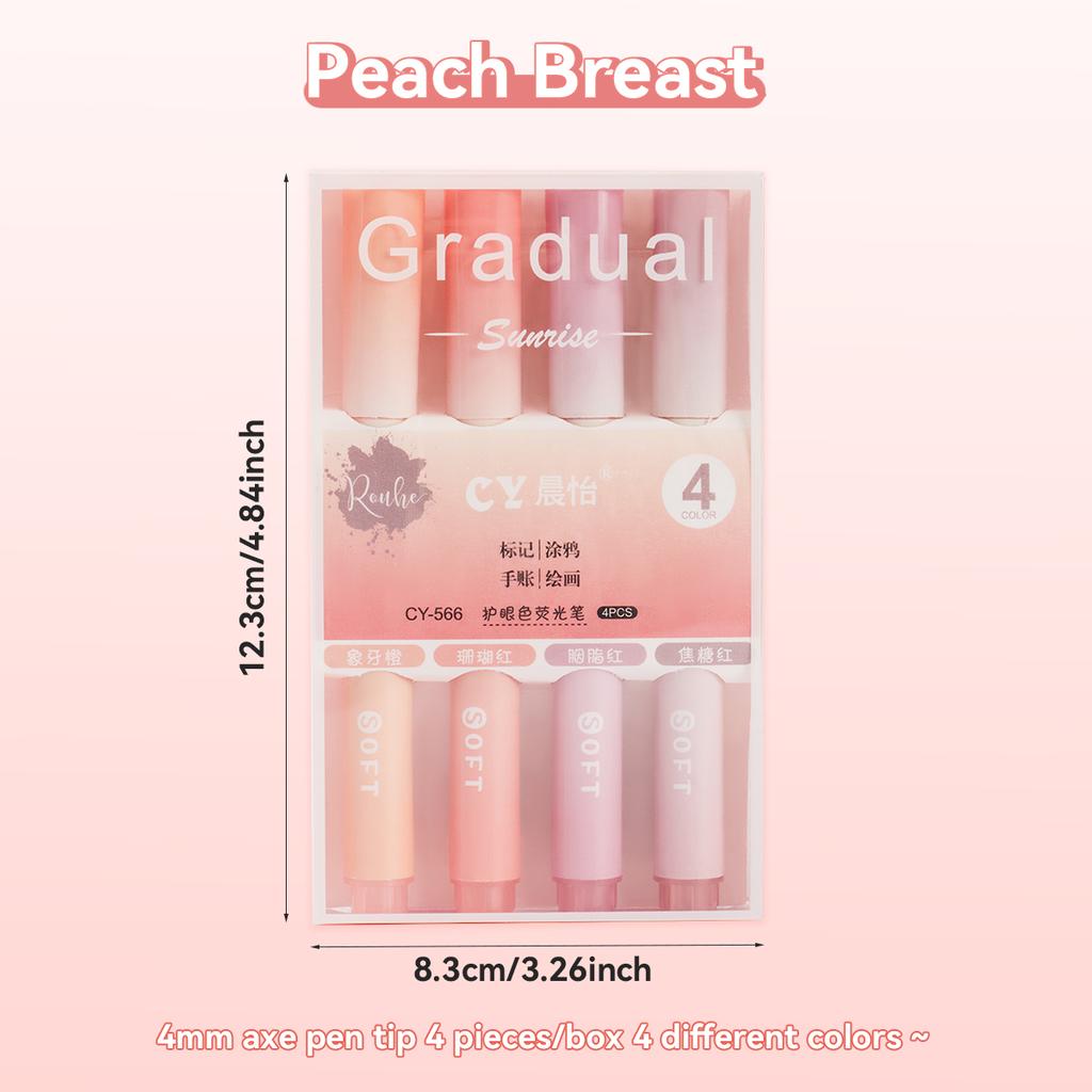 4 шт. Каваии Градиентный Флуоресцентный Маркер Ручка для Рисования, Граффити Не Стираемая Цветная Ручка Школьные Студенческие Канцелярские Принадлежности