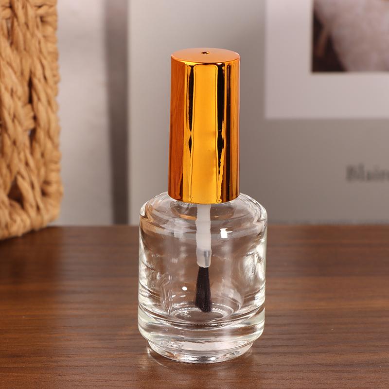 15ml Empty Nail Gel Polish Bottle with Brush Gold Cover - Small Sample Glass Container for Nail Art Glue And Refill Bottles