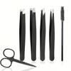 Набор для ухода за бровями, 6 предметов: Пинцеты из нержавеющей стали, изогнутые ножницы и щеточка для ресниц - Идеально для удаления волос на лице и придания формы бровям