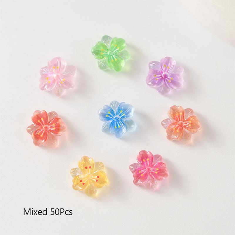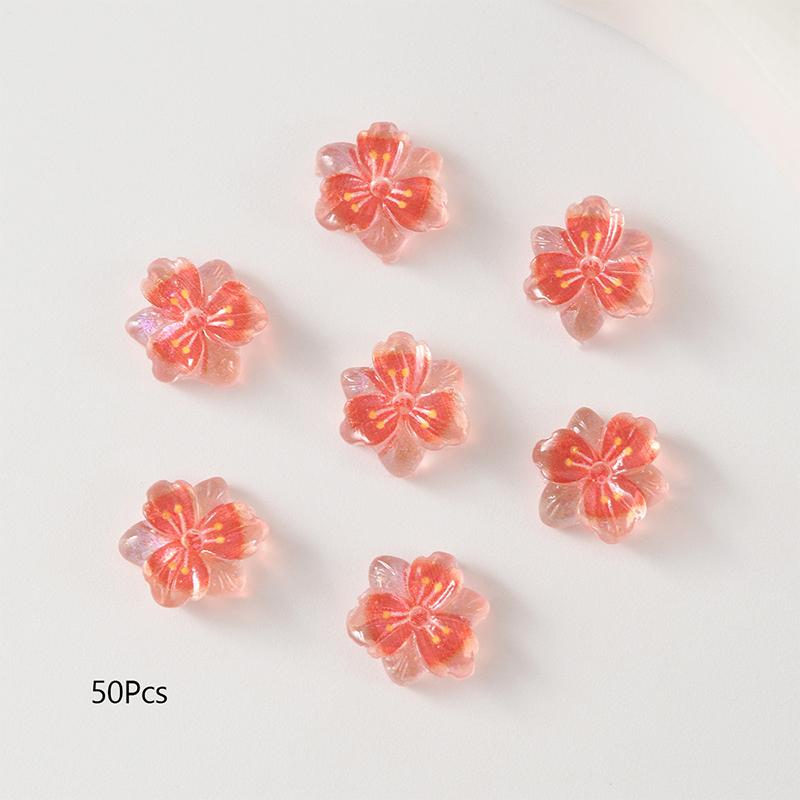 50 шт. 3D Ледяные Полупрозрачные Градиентные Цветы-Цветы Шармы для Ногтей Светящиеся Маникюрные Арт-Украшения для Дизайна Ногтей