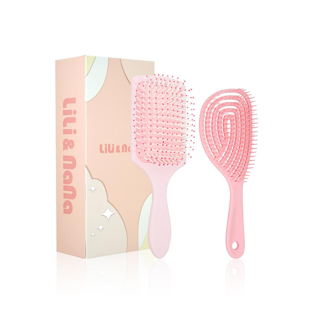 Набор расчесок для волос розового цвета, 2 стиля, мягкая щетина для легкого распутывания и повседневной укладки волос
