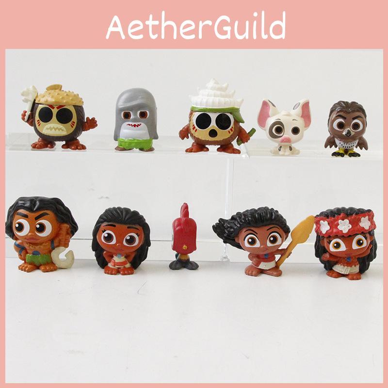 This Moana PVC figurines collection features 10 intricately designed characters,Crafted from durable PVC, these collectible figures support display and imaginative play. Their vibrant colors and detailed design make them suitable for decorating shelves or engaging in creative storytelling. Wipe clean with a damp cloth to maintain their appearance.