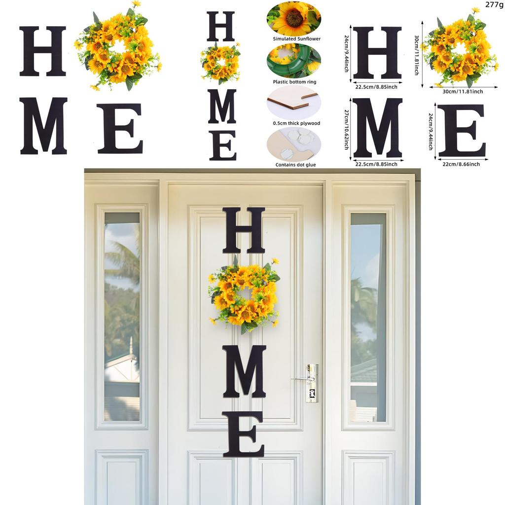 The HOME is a decorative wall hanging crafted from durable plastic and polyester, measuring approximately 30 cm in width. It features a simple design with sunflower motifs, perfect for seasonal celebrations and home decor. Its lightweight construction allows easy installation on doors or walls. Suitable for autumn and harvest-themed events, it adds a festive touch to various occasions. Wipe clean with a damp cloth to maintain its appearance.