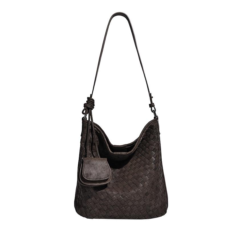 Niche Design Fashion Woven Bucket Bag for Women 2025 New Versatile Casual Lazy Style Commuter Shoulder Bag