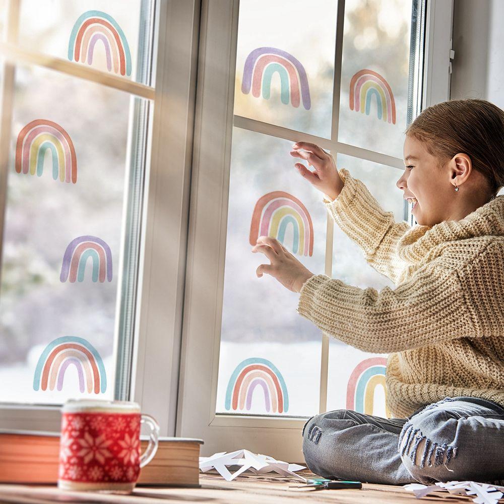 Цветные наклейки для стен с эффектом приклеивания для спальни, украшение для детской комнаты, наклейки-радуги, наклейка на стену