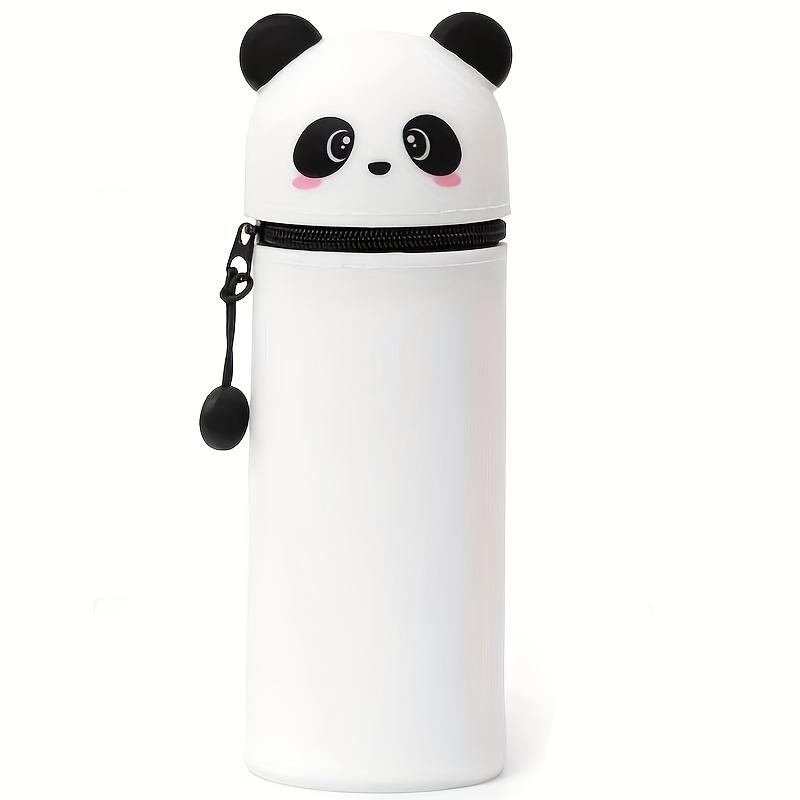 1 шт. Милый силиконовый пенал в виде панды, 2-в-1, мягкий держатель для ручек на молнии, белый дизайн с животными для школьных или офисных принадлежностей