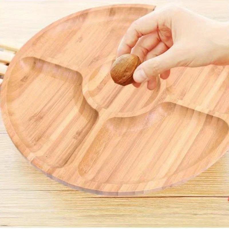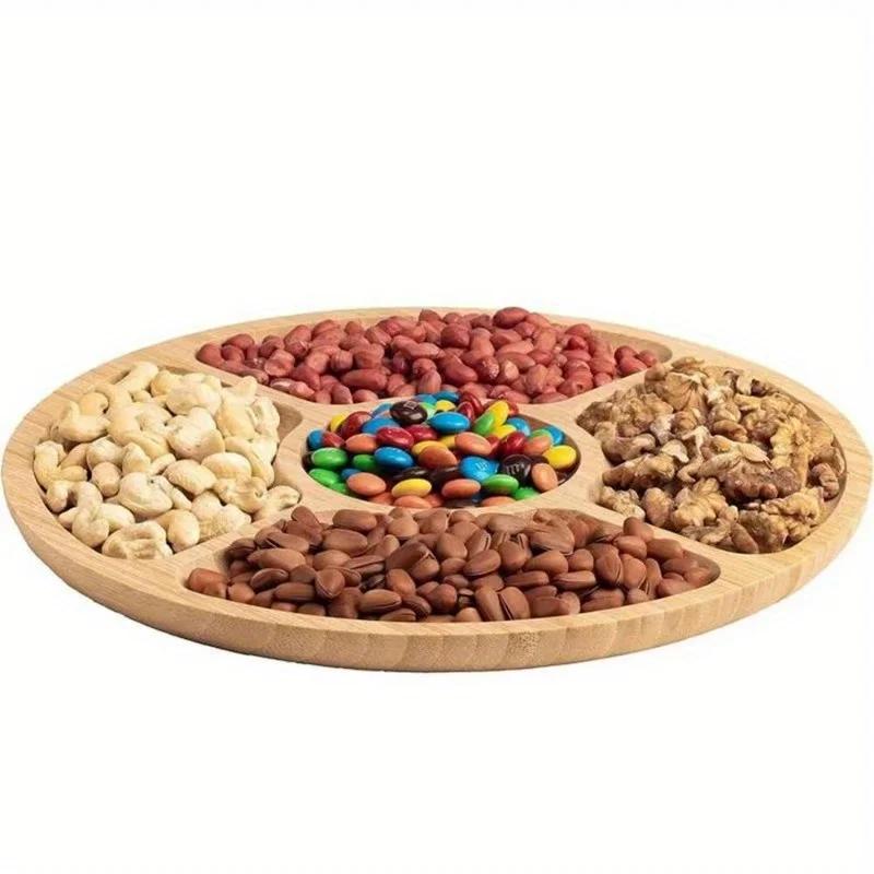 Деревянные разделенные подносы для сервировки Бамбуковый поднос для фруктов с 5 отделениями Круглый поднос для праздничных блюд Закуски Сухофрукты
