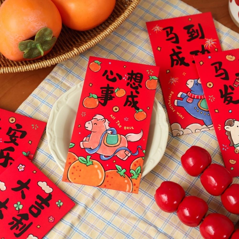 6pcs Horse Year Chinese New Year Red Envelope Traditional Style Lucky Red Pockets Spring Festival