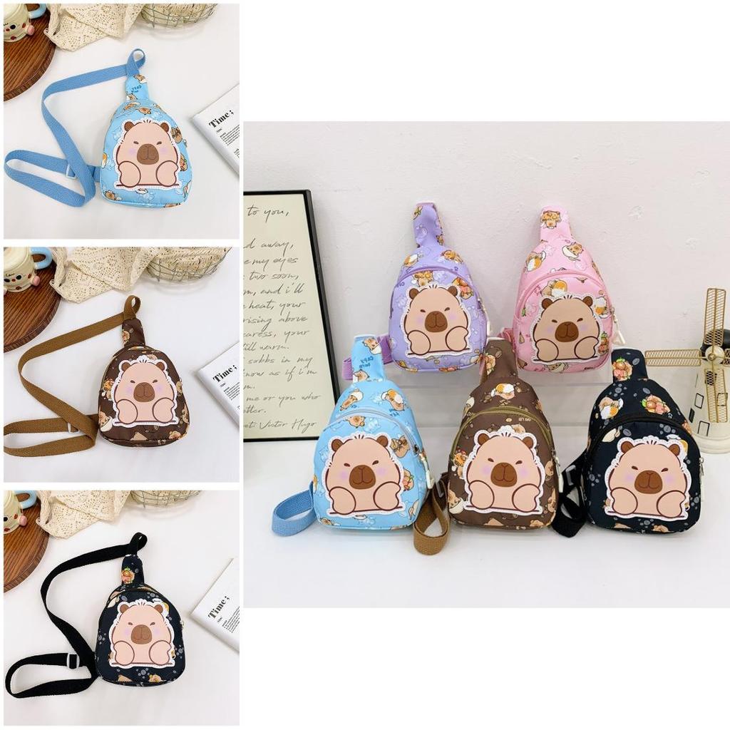 The Capybara Kids Chest Bag is a lightweight and functional accessory designed for childrens everyday use. Crafted from durable nylon with a polyester lining, this mini crossbody bag ensures long-lasting performance while maintaining a soft and comfortable feel. Measuring compact dimensions, it offers a practical yet stylish solution for carrying small essentials, making it ideal for young users. Available in a range of vibrant colors including black, pink, brown, blue, and purple, it features playful cartoon patterns that appeal to childrens tastes.