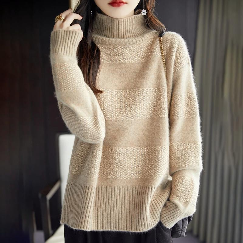 Женский свитер Осень Зима Утепленный Пуловер Теплый Вязаный Полосатый Многослойный Эластичный С Длинным Рукавом Джемпер Топы