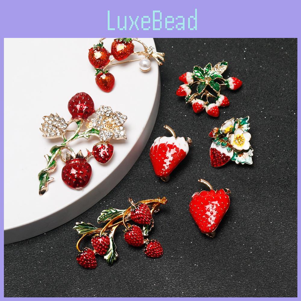 Креативная брошь-клубника с отделкой стразами для модных аксессуаров