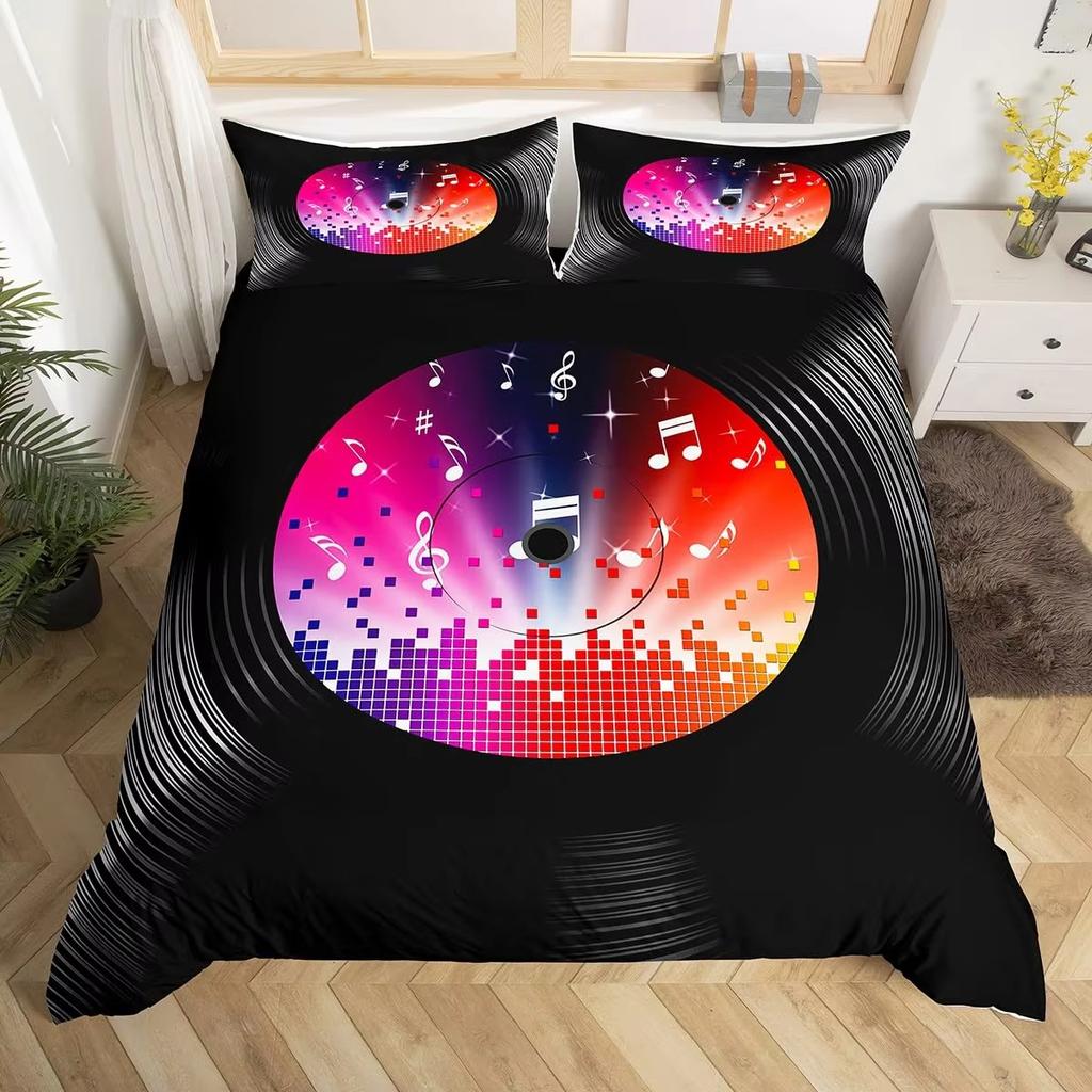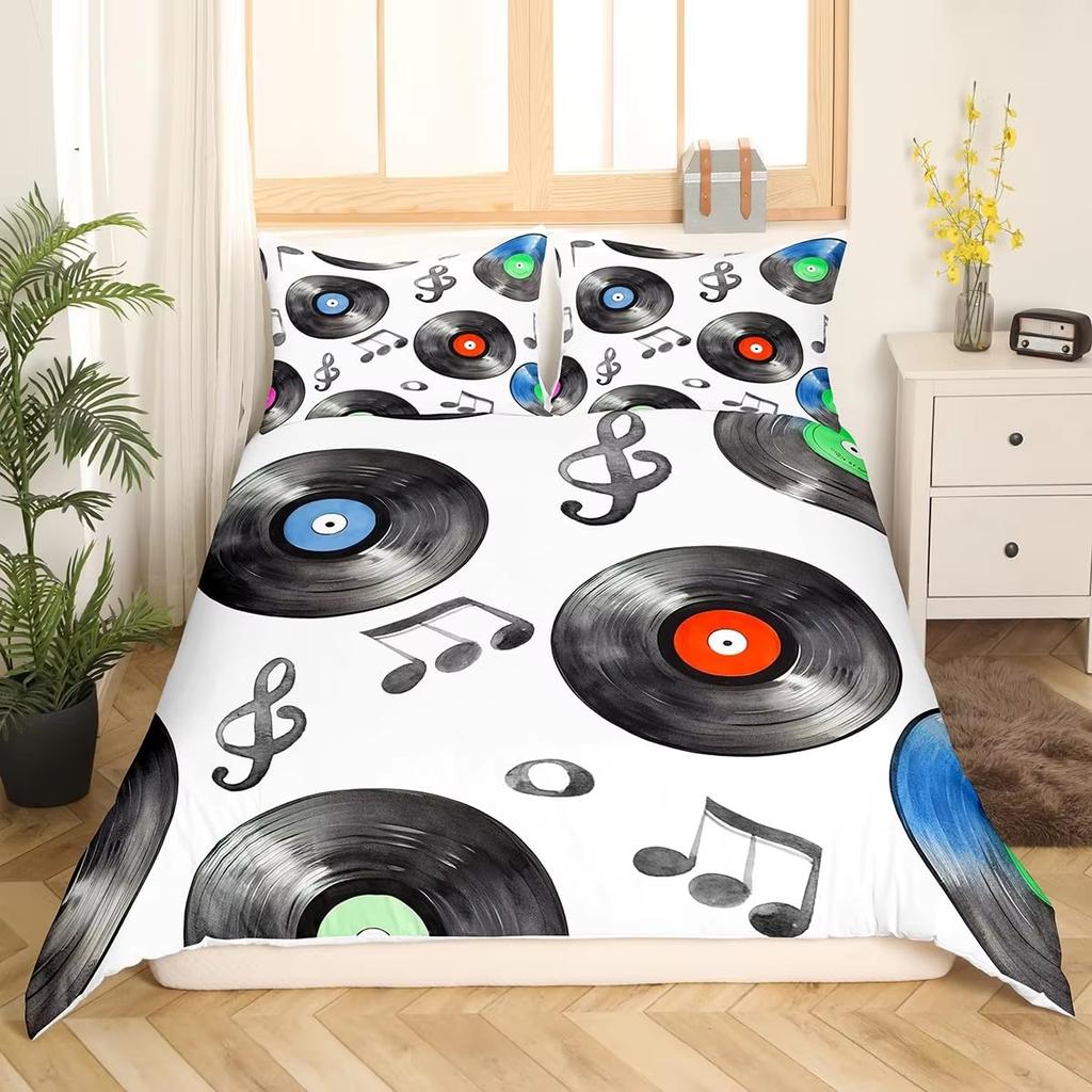 Пододеяльник с рисунком записи Музыкальная тематика Постельный комплект Ноты Чехол для одеяла Подходит для мальчиков девочек детей 3 предмета с 2 наволочками