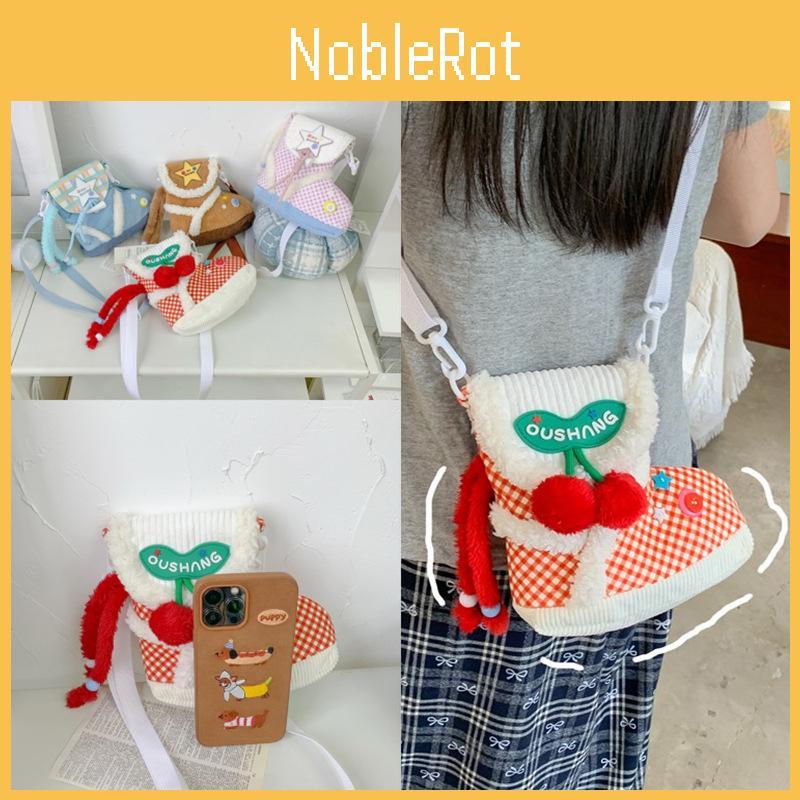 Плюшевая мультяшная наплечная сумка в форме туфли для девочек с застежкой-молнией и внутренним карманом