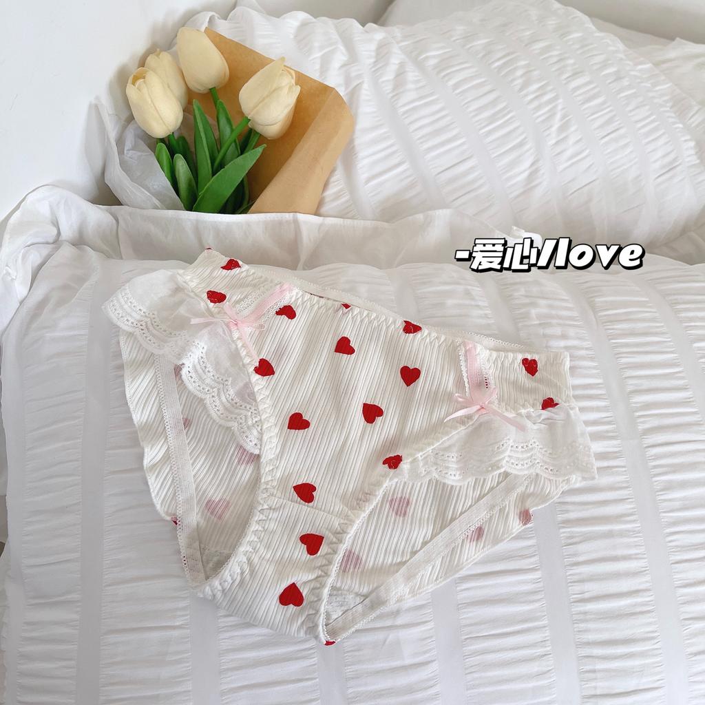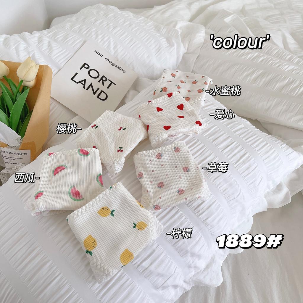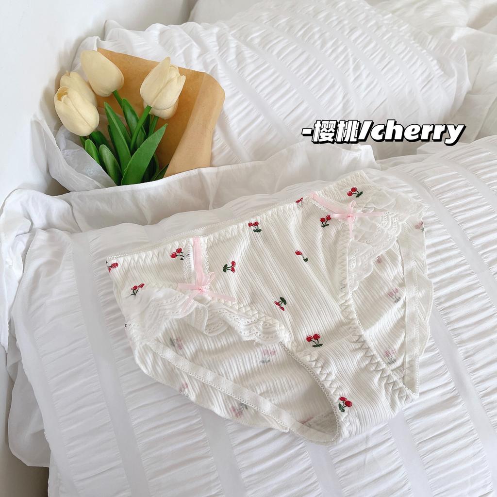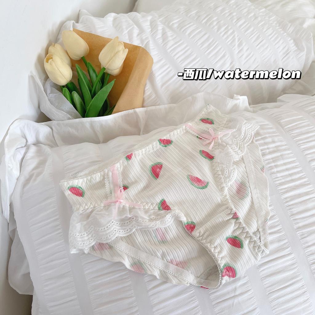 Женские весенне-осенние трусики с мультяшным фруктовым принтом и кружевной отделкой с низкой посадкой