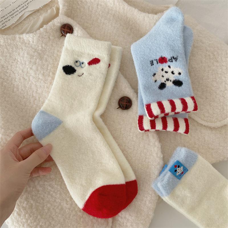 Носки из австралийского бархата, Милый мультяшный щенок, Пушистая тканевая этикетка Носки до середины икры, Теплые и мягкие носки для сна