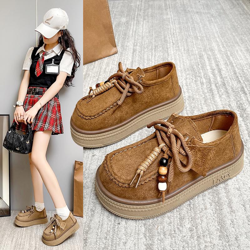 Женские кожаные туфли на платформе, полностью закрытые, на шнуровке, «кенгуру», увеличивающие рост, новая обувь-лоферы, маленькие кожаные туфли, одинарные туфли