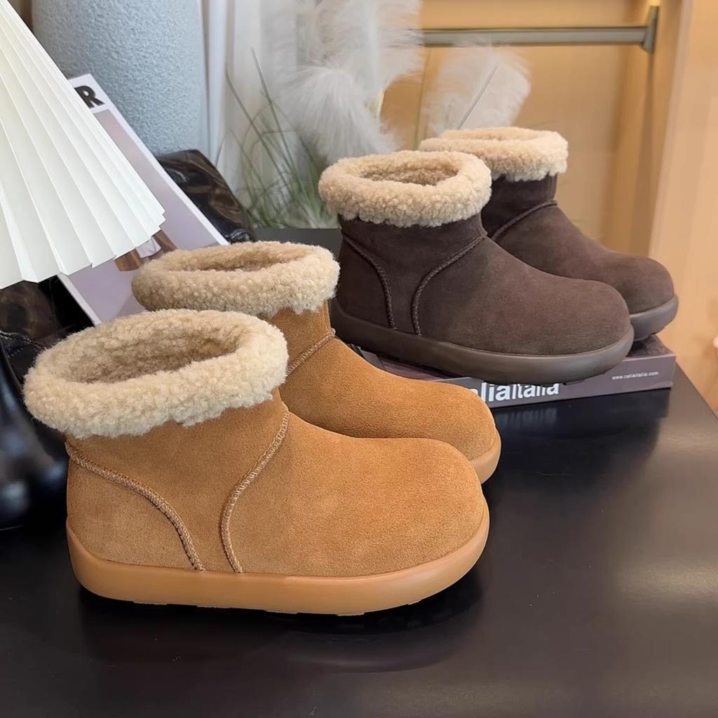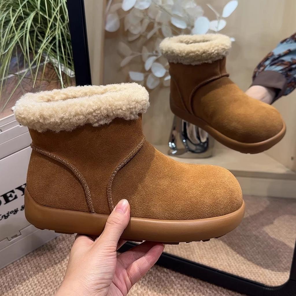 Зимние женские сноубутсы из натурального меха, новые, на толстой подошве, теплые короткие ботинки с утолщенной хлопковой подкладкой