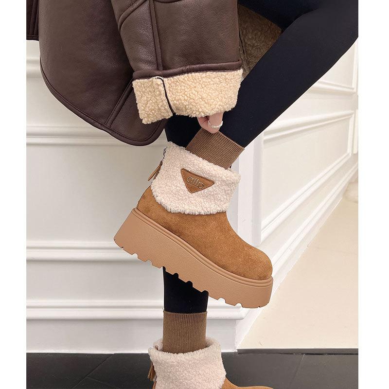 Кожаные зимние ботинки на толстой подошве, увеличивающие рост, женские короткие ботинки, новые зимние бархатные утепленные теплые хлопковые ботинки