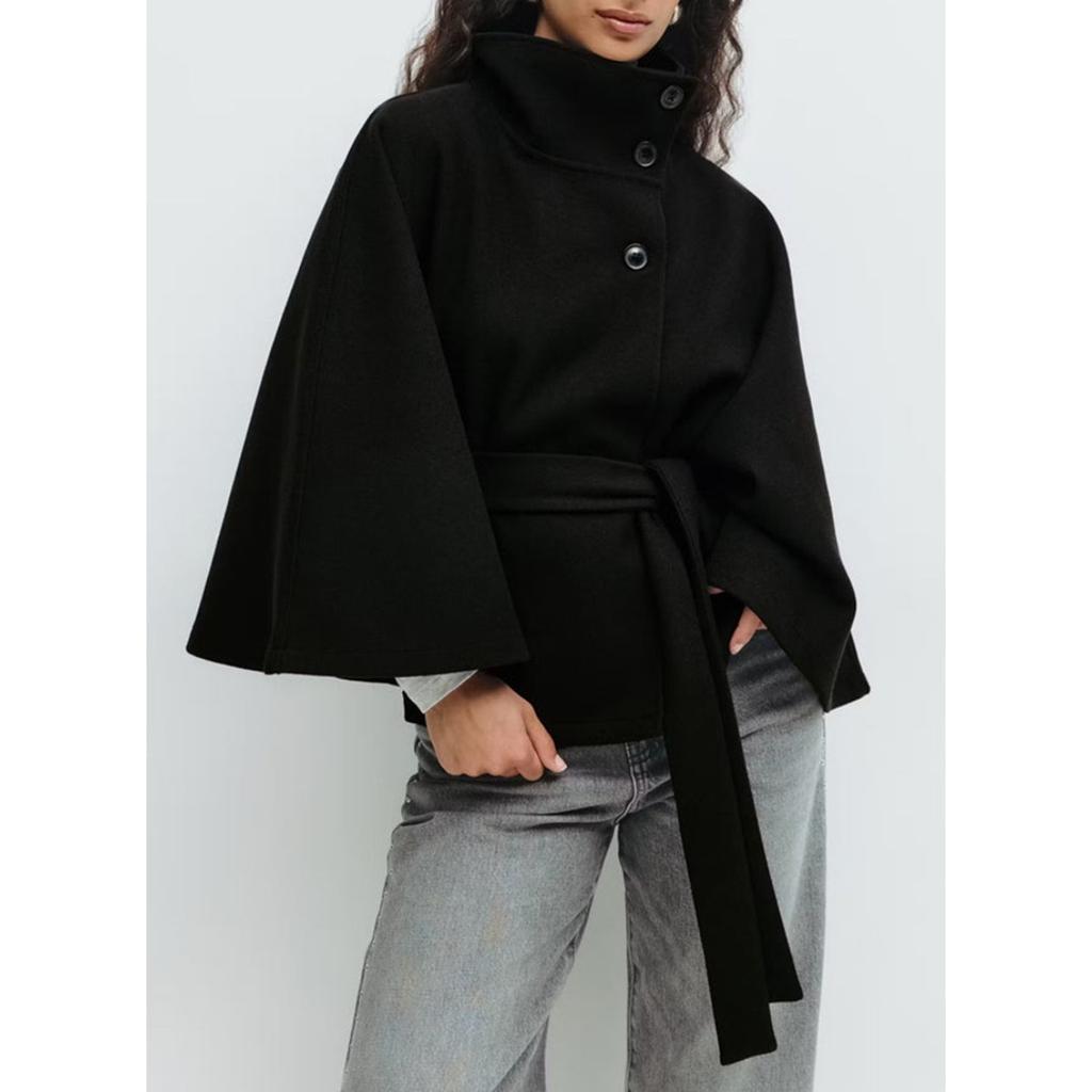 2025 Женское осенне-зимнее новое однотонное пальто-накидка со стойкой, на пуговицах и с поясом, модная верхняя одежда для Amazon Cross-border