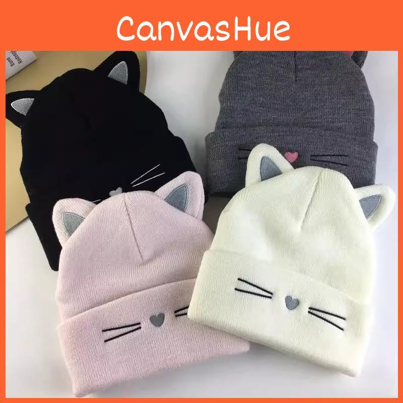 Зимняя вязаная шапка с кошачьим животным элементом для женщин и мужчин, уютный полиэстеровый головной убор