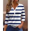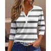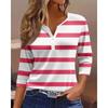 2025 Лето Новая Женская Повседневная Футболка в Полоску на Пуговицах с V-образным Вырезом Модный Универсальный Топ для Европы и Америки — купить товар онлайн с бесплатной доставкой по всему миру!