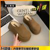 Женские кожаные толстоподошвенные новые маленькие полушлепанцы с закрытым носком, тапочки из хлопка для улицы