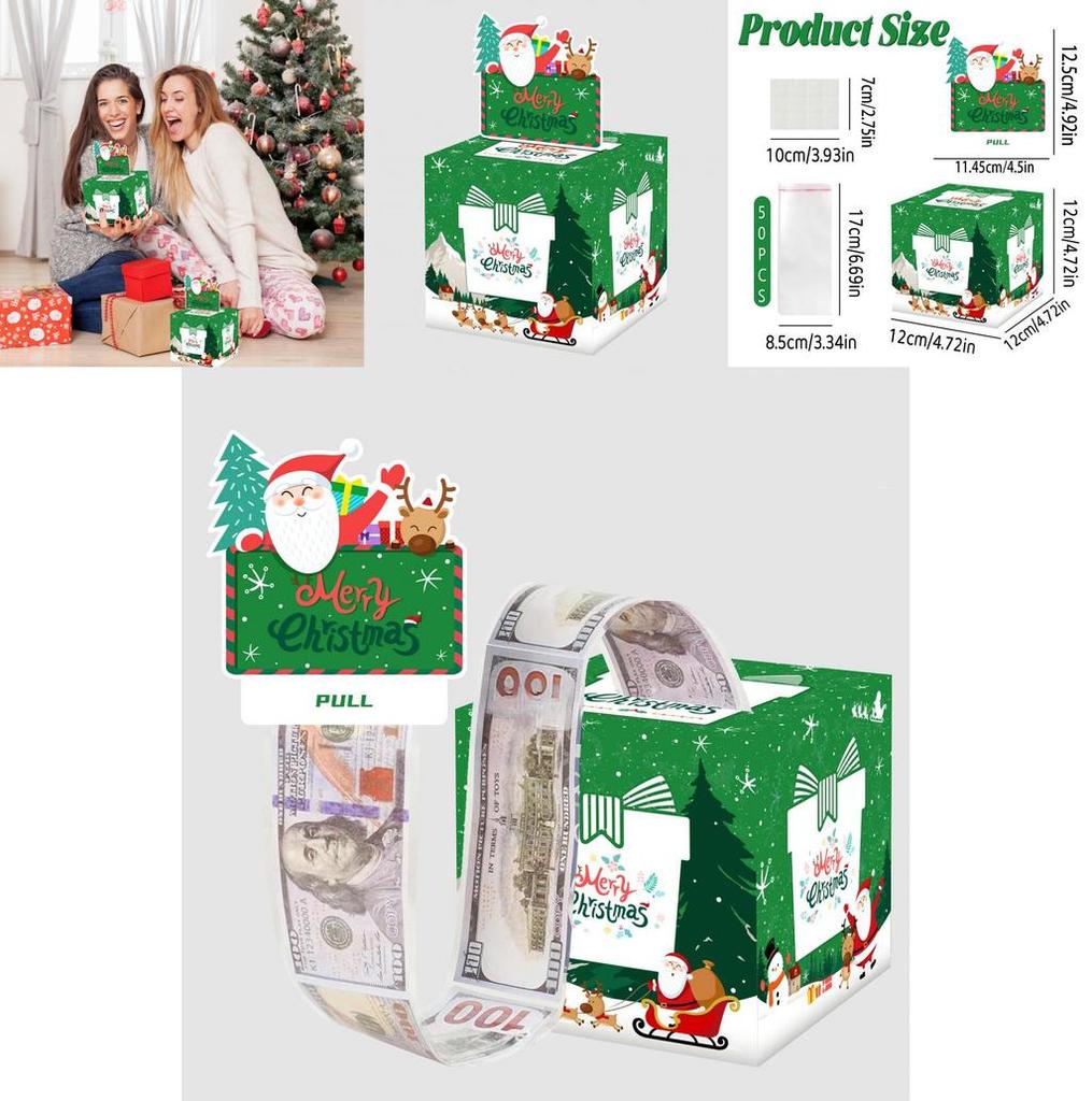 Эта рождественская подарочная упаковочная коробка имеет кубический дизайн 12x12x12 см, изготовлена из прочного бумажного материала, идеально подходит для упаковки наличных денег или небольших подарков.. Его яркий зеленый цвет украшает праздничные экспозиции, поддерживая празднование и особые случаи.. Подходит для дней рождения, выпускных и семейных собраний, добавляет декоративный штрих. Для ухода протирайте влажной тканью.