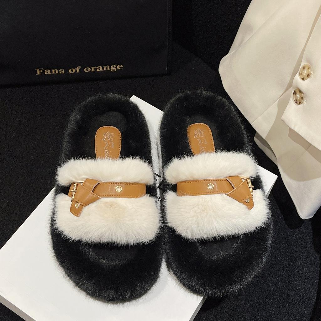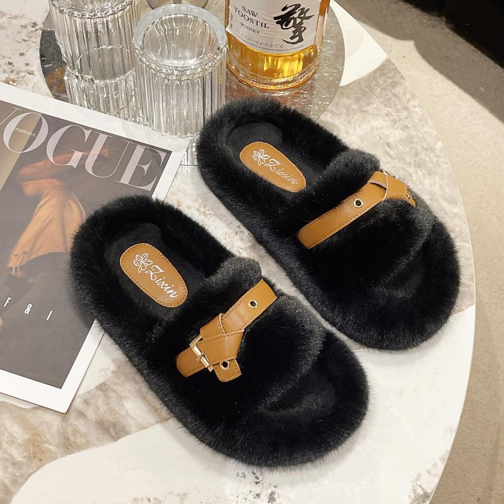Новые женские пушистые тапочки осень и зима уличная мода повседневная обувь шлепанцы платформа универсальная женская обувь трендовая уличная одежда девушки