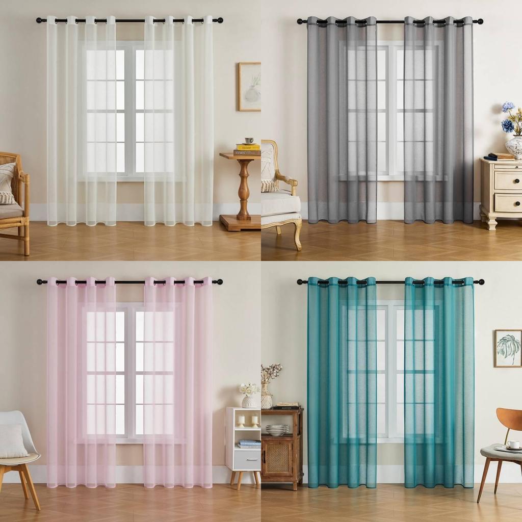 Простая однотонная штора из светопропускающей ткани для современного дома и офисного декора