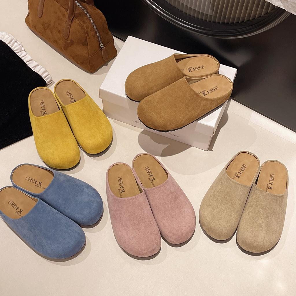 Весна и лето новые повседневные шлепанцы на платформе на плоской подошве с одним педальным носком, ретро полушлепанцы, одинарная обувь женская