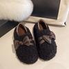 Бантик верхняя одежда пушистые хлопковые туфли женская обувь новая осенне-зимняя мода плоская подошва бархатные две носки зимние ботинки