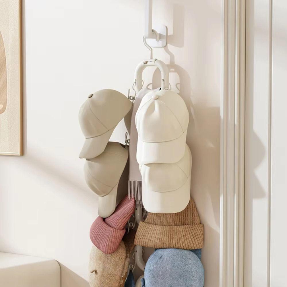 Vertical Hat Storage Rack 4/6 Hooks Hanging Hat Organizer Fashion Hat Display Holder Household