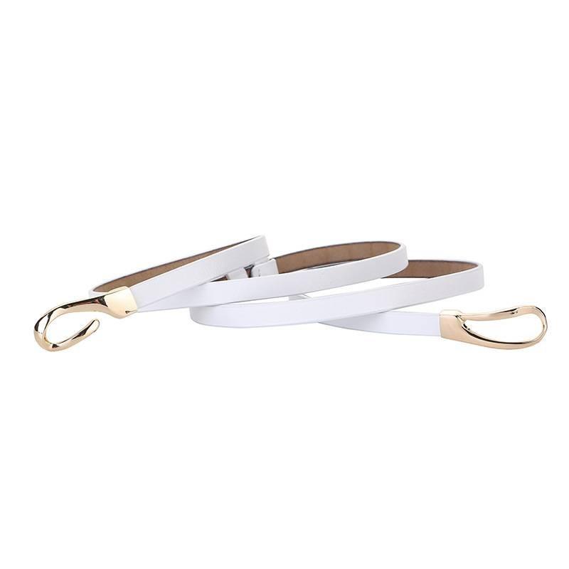 This classic leather dress belt for women features a smooth finish and a durable alloy clasp, providing a polished look for formal occasions. Crafted from two-layer genuine leather, it measures 105cm in length with a narrow width under 2cm, ensuring a sleek profile. Ideal for office attire or elegant events, the belt's vibrant color options enhance versatile styling. Wipe clean with a damp cloth to maintain its refined appearance.