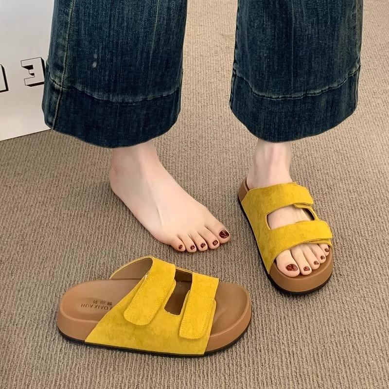 Кожаные шлепанцы на толстой подошве, крутые, женские, летние, новые, с юбкой, повседневные, пляжные, сандалии на одном ремешке