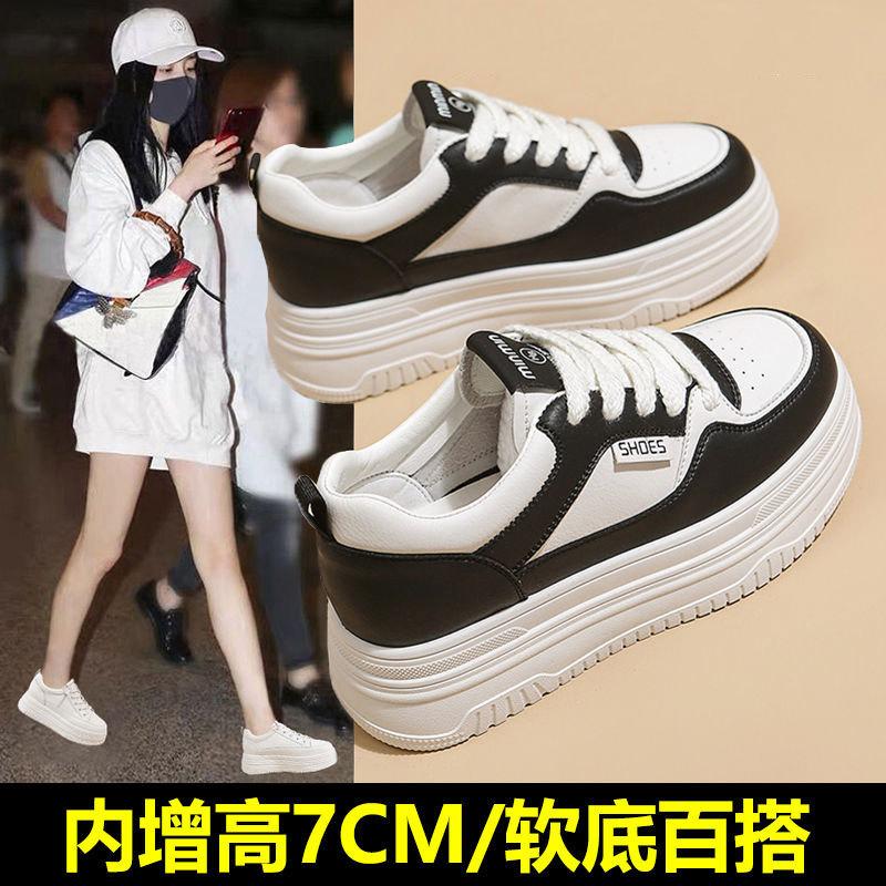Кожаные белые туфли на внутренней платформе, женская обувь, весна и лето, новая обувь для маленького человека на толстой подошве, см, повседневные туфли на платформе-маффин