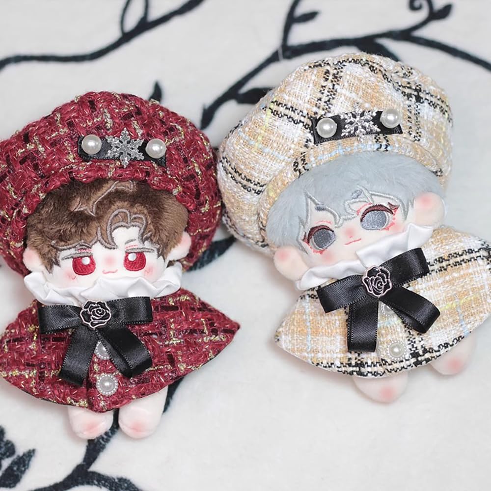 niannyyhouse 10cm Plush Clothes Set with Poncho, Hat, and Shawl for Cotton Doll Dress-Up (Red)