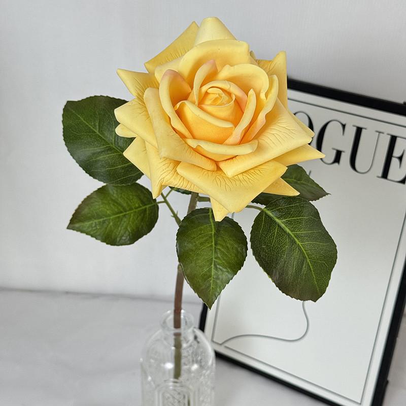 Свадебная роза искусственный цветок с тканевыми и шелкографированными листьями для вечеринки и домашнего декора