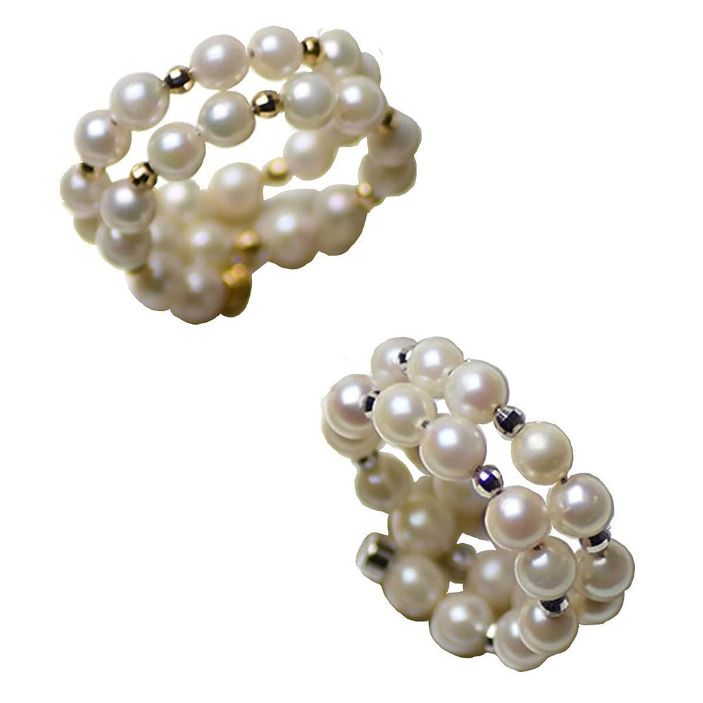 Это кольцо в виде двойной спирали, изготовленное из жемчуга Акойя размером от 3,5 до 4,0 мм, который становится все более редким.