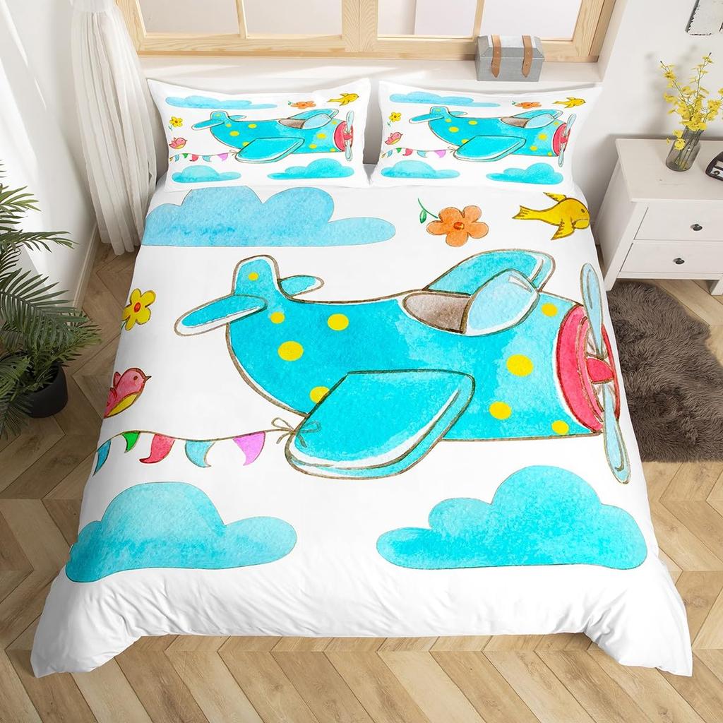 Детский пододеяльник на тему полета на самолете, большой набор из 3 предметов, подходит для детей и подростков, постельное белье, украшение комнаты, подарок, супермягкий