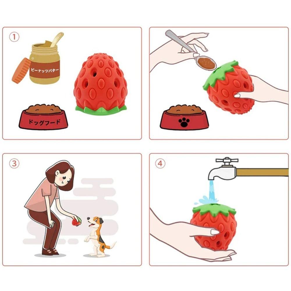 Strawberry Shaped Dog Food Leaking Ball Tooth Cleaning Dog Grinding Teeth Toy for Dog Training