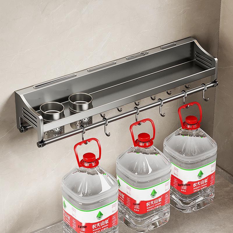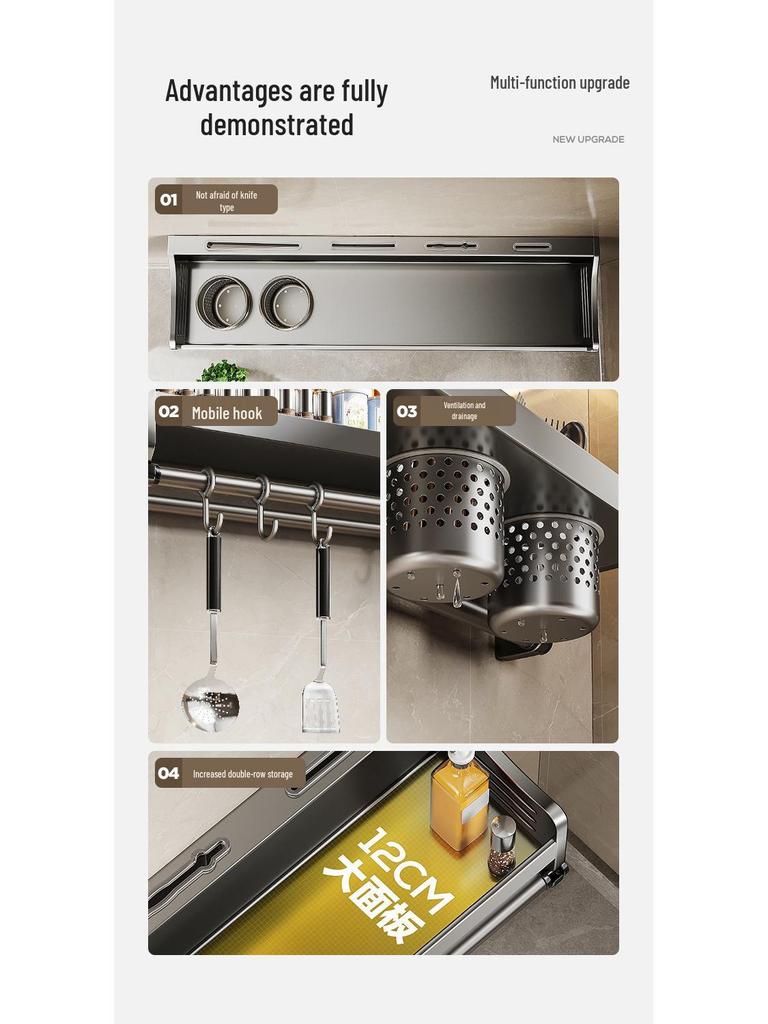 Кухонная полка для хранения без сверления: Многофункциональная подставка для палочек и ножей с местом для хранения приправ, настенная.