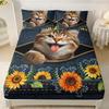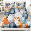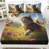 Мультяшный кошачий узор Шапка на кровать из трех частей Цифровая печать Постельное белье Шапка на кровать Набор из трех частей Дети и взрослые