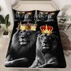 Матрас с рисунком льва, трехпредметный, цифровая печать, для пары, черный, золотой, корона, покрывало, постельное белье