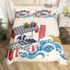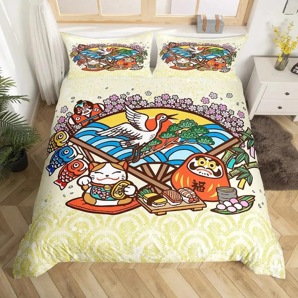 Комплект пододеяльника Lucky Cat в японском стиле с рисунком «Волна Хокусая», комплекты постельного белья, экзотический красный, ворота тории, декор солнца, комплект пододеяльника