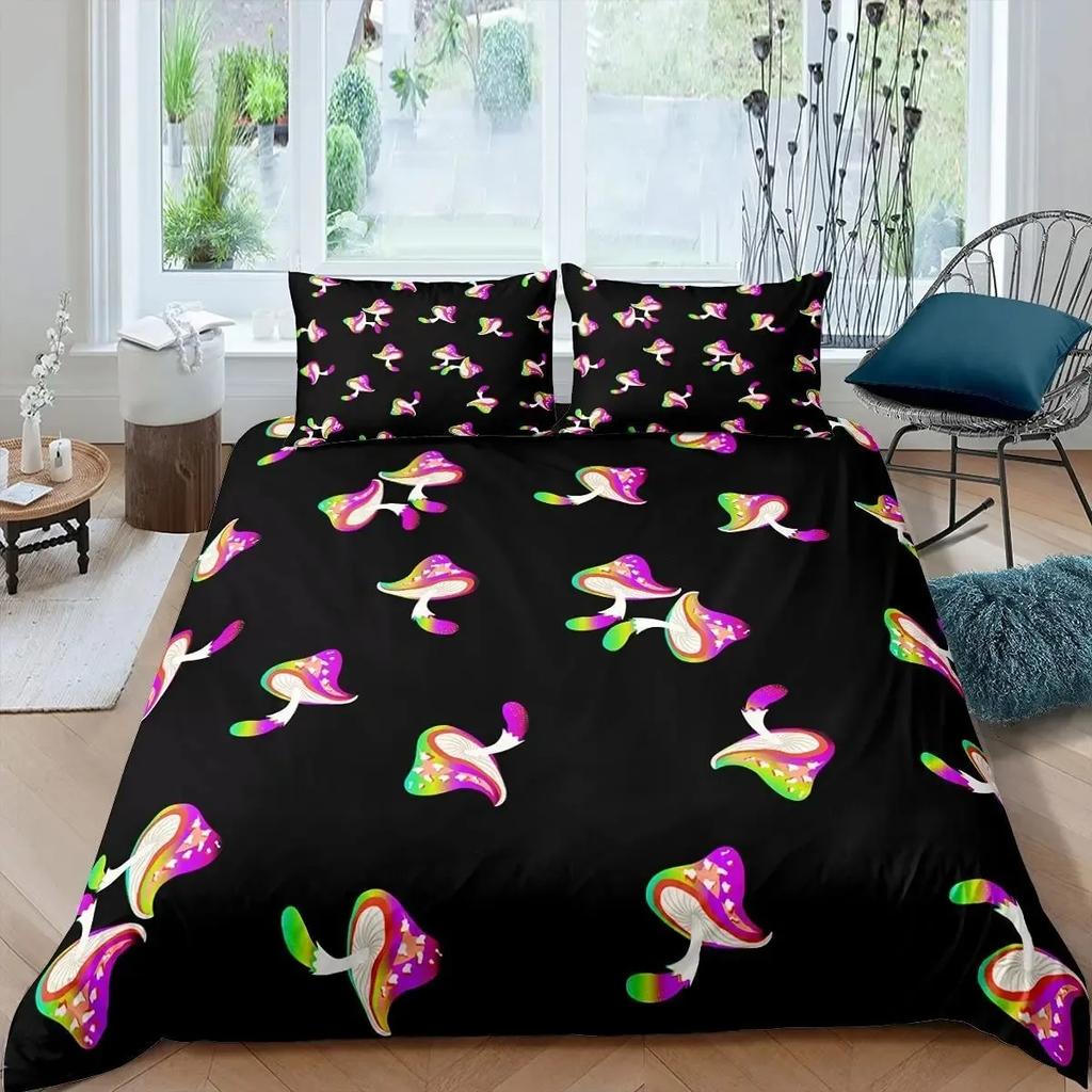 Комплект пододеяльника «Дикие грибы» Бордовый комплект постельного белья с растениями для детей Пододеяльник Мягкий полиэстер Размер кинг/квин с наволочкой