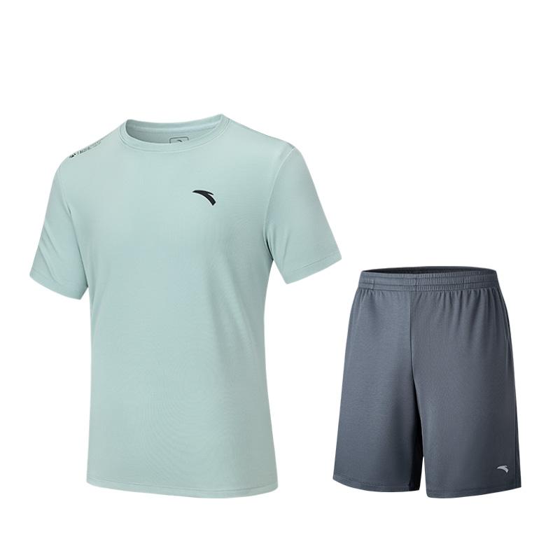 Anta Однотонная футболка с круглым вырезом, удобная, дышащая, универсальная, с коротким рукавом и шорты со средней посадкой, повседневный спортивный комплект, мужской комплект, океанско-синий 952527202-2