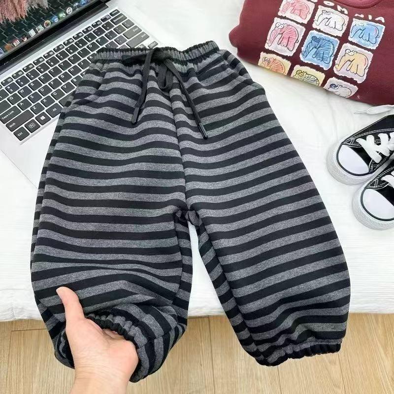 Stripe Pants For Boys And Girls One-piece Velvet Spring Autumn Winter New Childrens Korean Style Thick Warm Casual Sweatpants