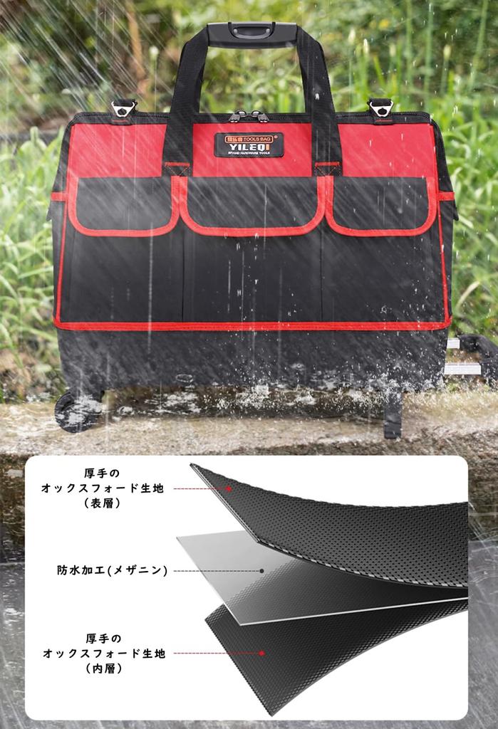 [Трехслойная ткань и долговечность] Изготовленная из двух слоев ткани Оксфорд и одного слоя водонепроницаемого покрытия, сумка для инструментов в целом долговечна и имеет долгий срок службы.
