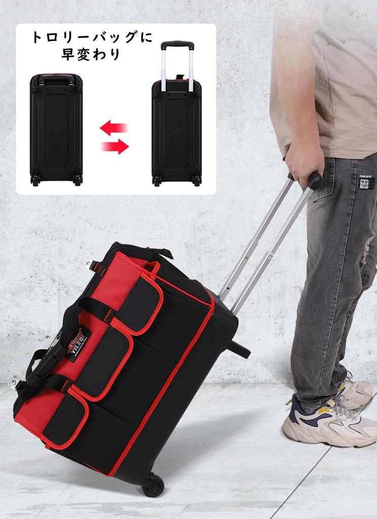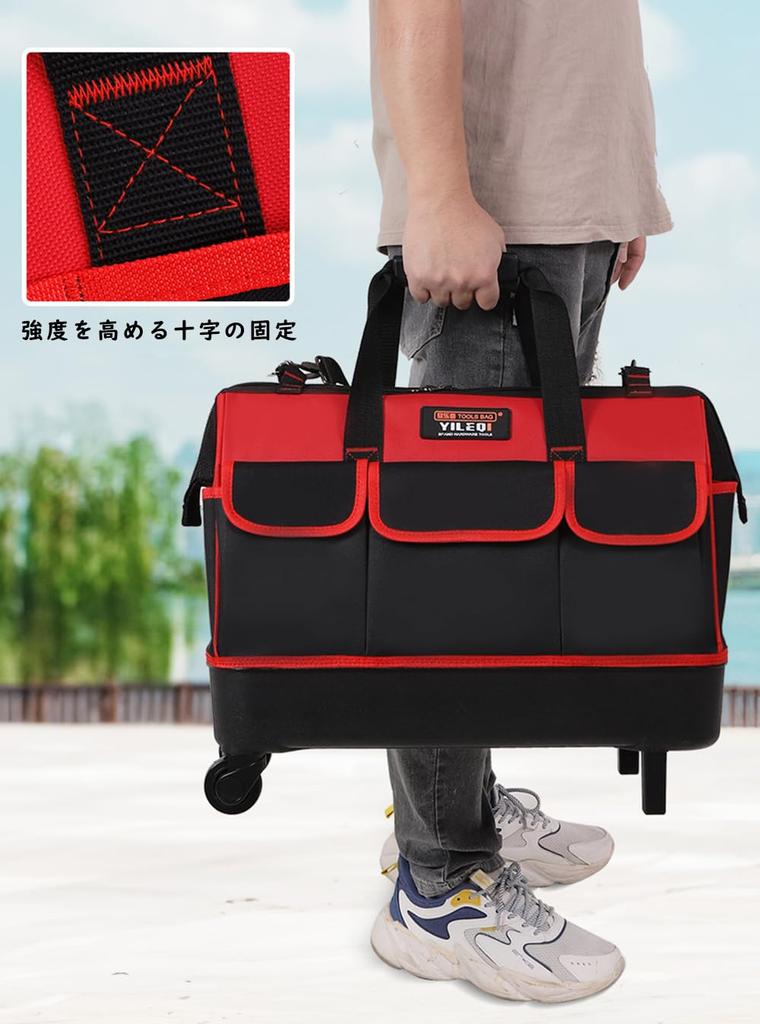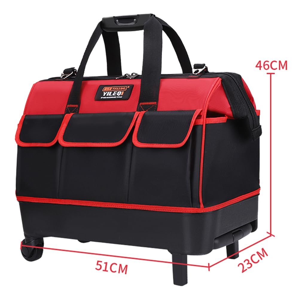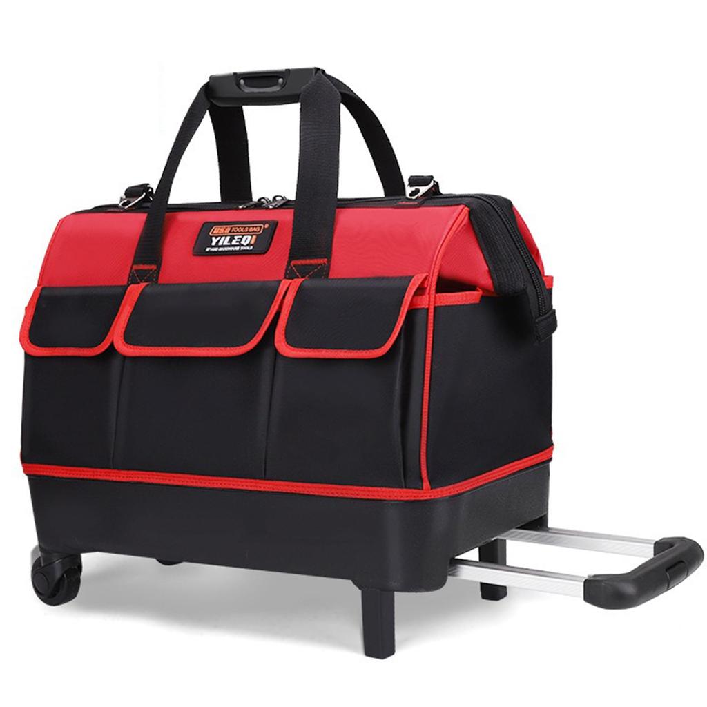 [Легко носить] В дополнение к пластиковой ручке и регулируемому плечевому ремню, он также оснащен колесиками и выдвижной ручкой, что делает его переноску легкой и удобной.
